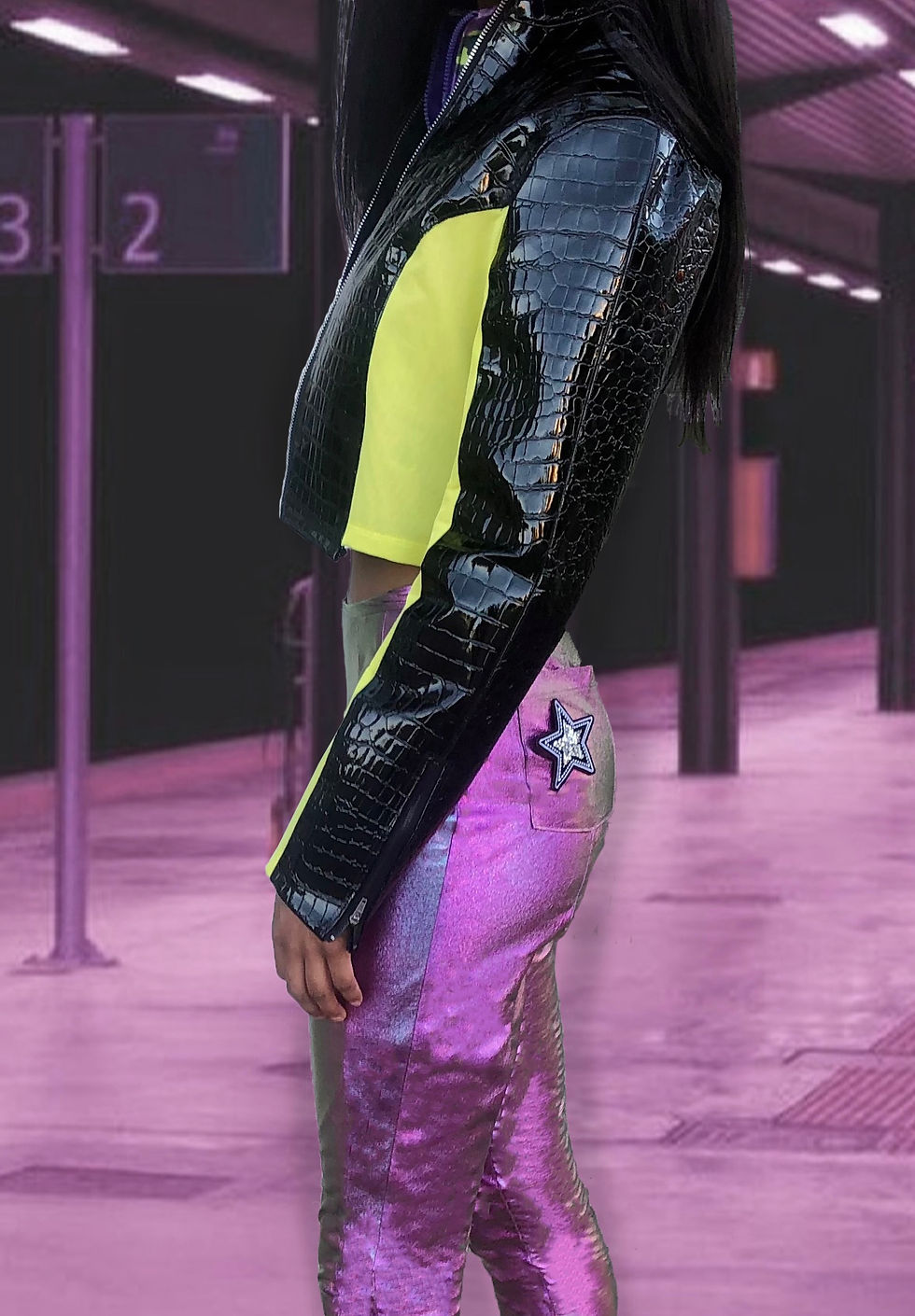 Black Snakeskin/ Lime Faux Leather Undergarment